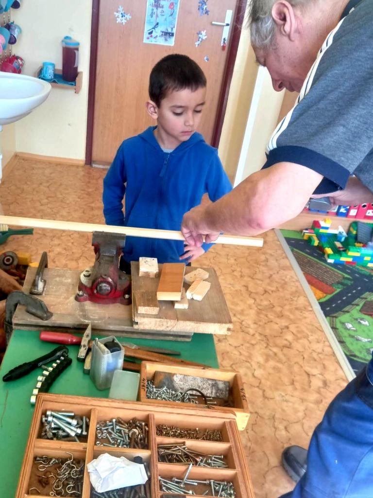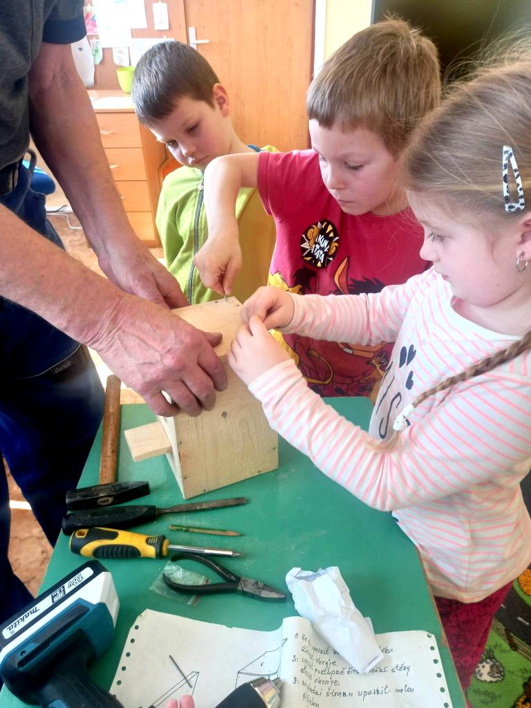 Jaké nářadí ukrývá dědečkova dílna? Jak se vyrábí ptačí budka? To byl projektový den na téma "Dědečkova dílna" určený nejen pro kluky, ale i pro holčičky z mateřské školy.