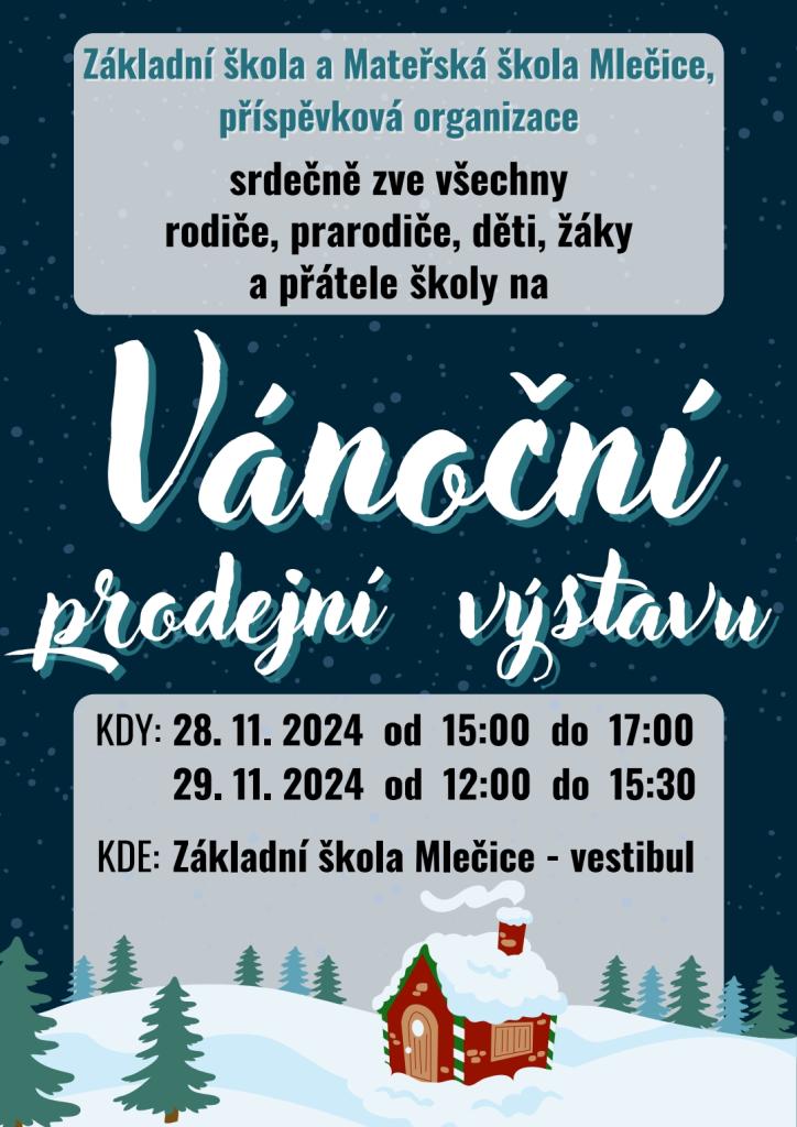 Jste také srdečně zváni na vánoční vystoupení dětí a žáků, které proběhne 29. 11. 2024 od 16.00 hodin před obecním úřadem ve Mlečicích u příležitosti zahájení adventu a rozsvícení vánočního stromečku.